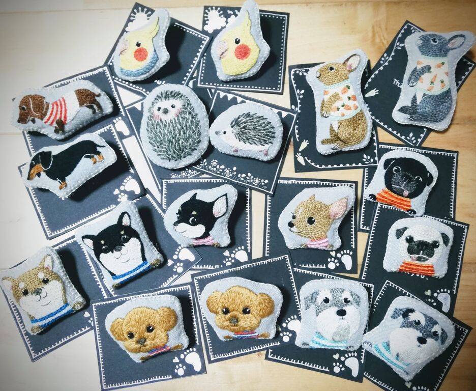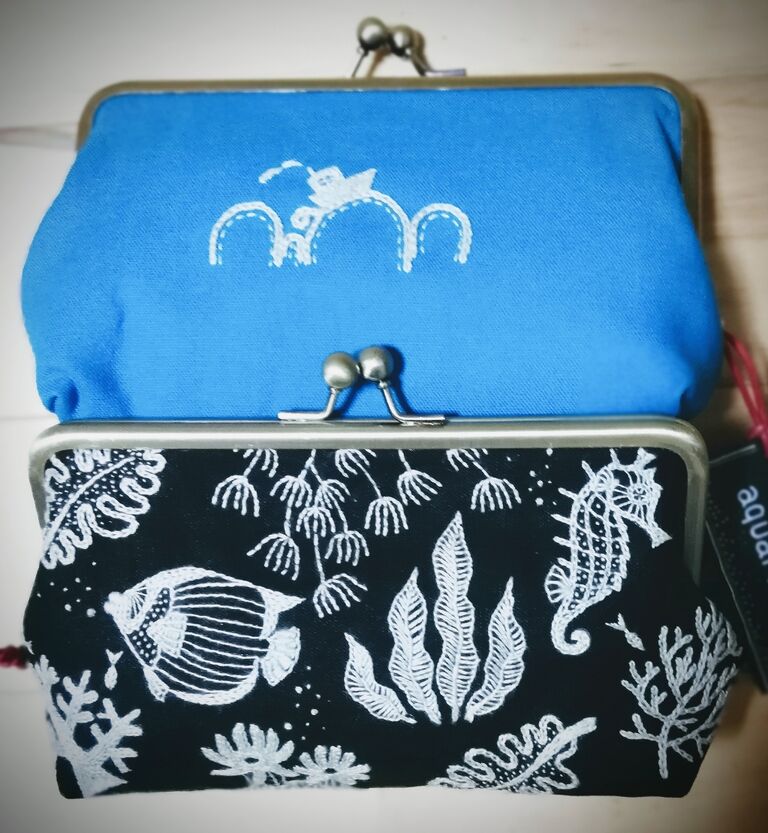今回は人気のバッグ、海模様のがま口、ブローチはお客様リクエストのモチーフ色々です🍀
